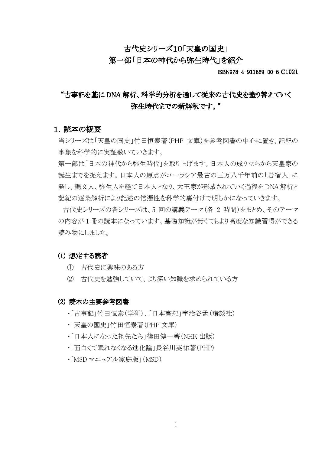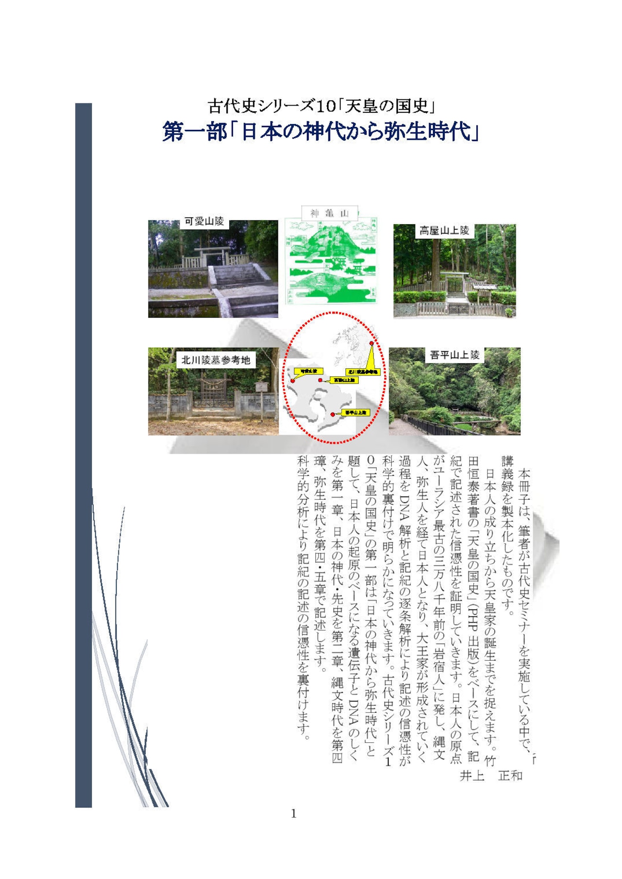 本冊子は「天皇の国史」竹田恒泰著(PHP文庫)を参考図書の中心に置き、記紀の事象を科学的に実証していきます。